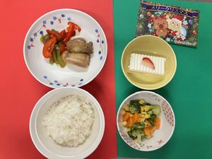 ・照り焼きチキン ・付合せ ・フレンチサラダ ・クリスマスケーキ |